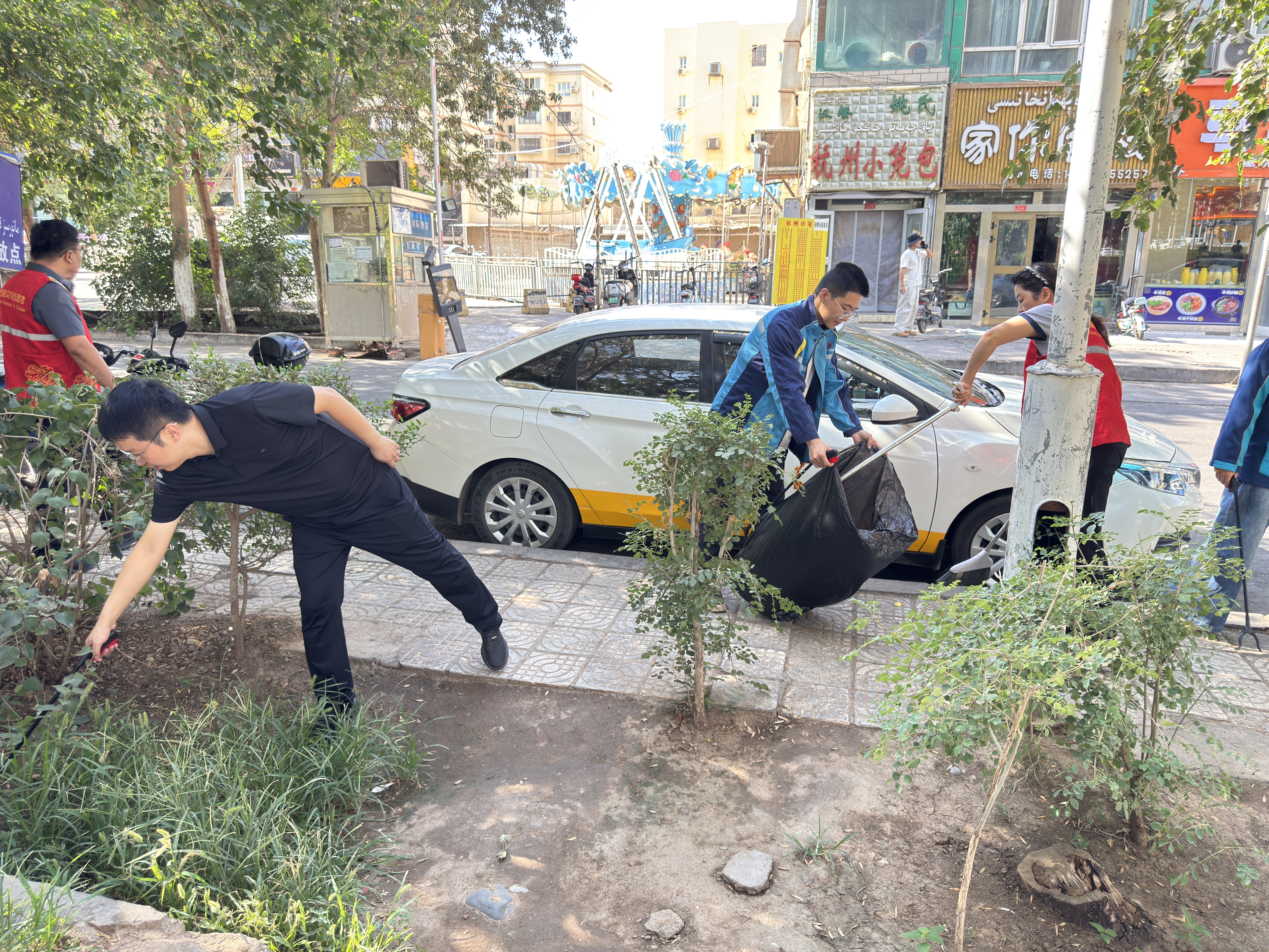 活動中,全體職工分工協(xié)作、默契配合,手持掃帚、垃圾鉗等清潔工具,對項目周邊綠化帶及主要通行道路展開了全面清掃。一部分人細致清掃地面落葉與雜物,一部分人認真擦拭宣傳欄、扶手等公共設(shè)施,還有專人負責(zé)收集和清運積存垃圾,并對平日易忽略的衛(wèi)生死角進行徹底清理?,F(xiàn)場氣氛熱烈,忙碌中不失條理,高溫下更顯擔當。